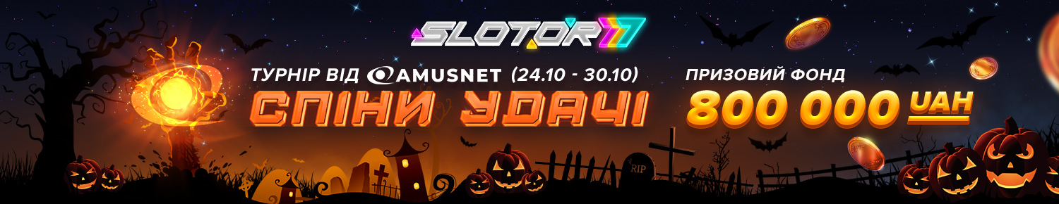 🔮 З 24 по 30 жовтня Slotor777 і Amusnet запрошують тебе в турнір “СПІНИ УДАЧІ” — магічне змагання, де на кону 800 000 UAH! 💰