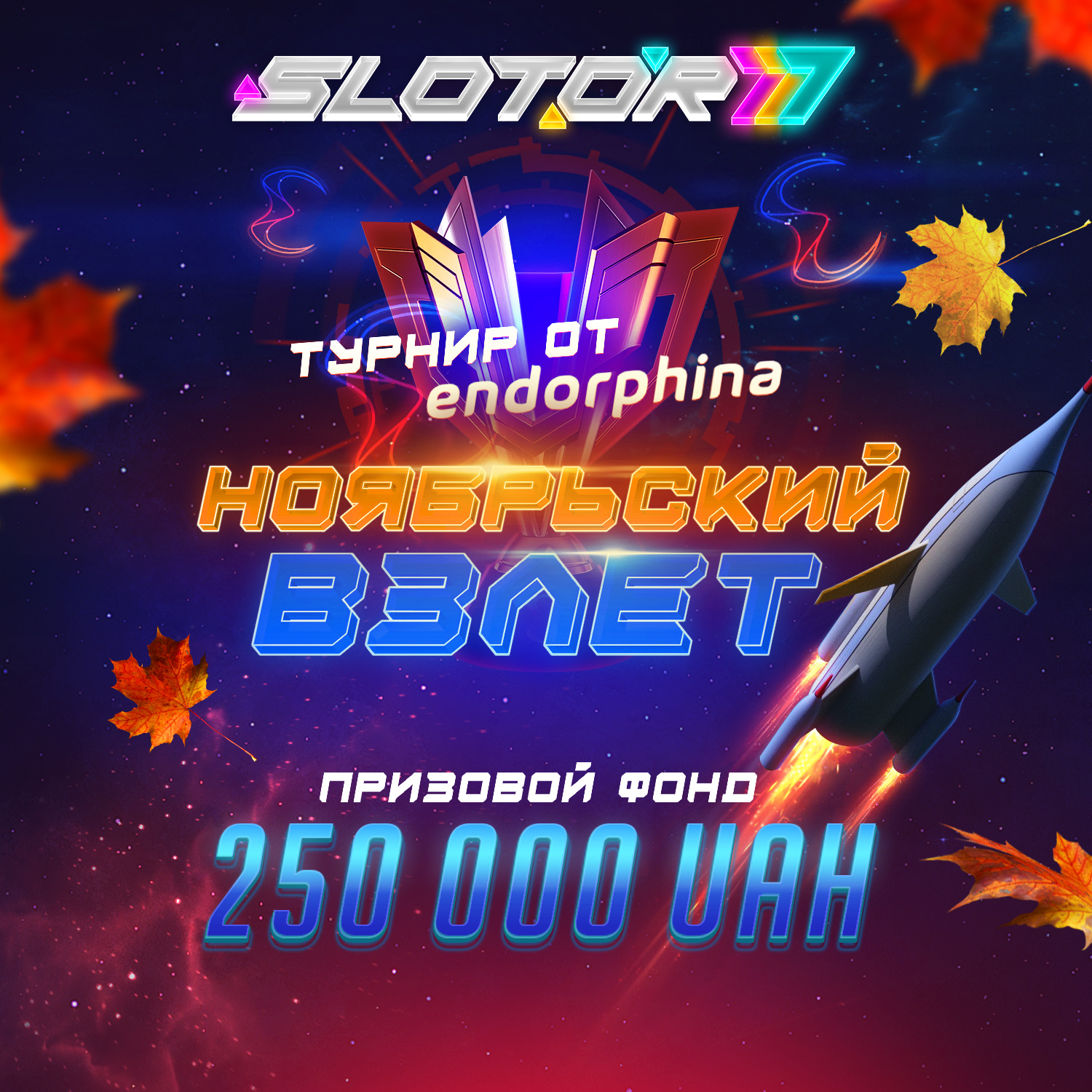 Присоединяйся к Endorphina Local Tournament — “Ноябрьский Взлёт” на Slotor777 и сражайся за долю призового фонда в 250 000 грн! 💰