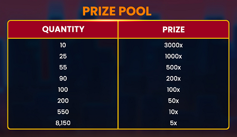 Доступные призы: До 3000x ставки и до трех (3) призов в розыгрыше призов.